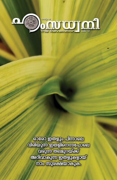 ബ്രഹ്മം-ദൈവം-നിശ്ചലസത്തയാണ്. അതില് പരംപൊരുള് ശബ്ദരൂപം ധരിക്കുന്നതാണ് ഓങ്കാരനാദം-നാദബ്രഹ്മം. മഴത്തുള്ളിക്കിലുക്കത്തിലും കാറ്റിന്റെ ചൂളംവിളിയിലും ഓങ്കാരനാദം പൂത്തുവികസിക്കുന്നു. അദ്വയമായ ബ്രഹ്മംഅനേകവസ്തുക്കളായി വേര്തിരിയുന്നത് നാദബ്ഹ്മത്തിലാണ്. അനേകമായി വേര്തിരിഞ്ഞു കാണുന്ന ഏതൊരു വസ്തുവിലും നിറഞ്ഞു പ്രകാശിക്കുന്നത് പരംപൊരുള് തന്നെയെന്ന് തിരിച്ചറിഞ്ഞ് എല്ലാറ്റിലും പരംപൊരുളായ ദൈവത്തെ ദര്ശിക്കുന്നതാണ് അദ്വൈതാനുഭവം. അദ്വൈതാശയത്തിന്റെ പ്രായോഗികതയിലൂന്നിയ സാധനാനുഷ്ഠാനമാണ് ഇവിടെ ഇതള് വിരിയുന്നത്. ഈ ഇതളുകള് പെറുക്കി സൂക്ഷിച്ചാല് ഓരോരുത്തര്ക്കും മോക്ഷദീപം തെളിയും.