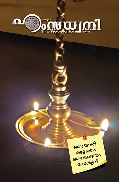 അദ്വൈതത്തിന്റെ പാതയില് കൂടി ലോകത്തെ മുന്നോട്ട് നീക്കുവാന് സമയം ഏറ്റവും അടുത്തു കഴിഞ്ഞു. മനുഷ്യാ നിന്റെ കര്മ്മഭൂമി ഇതാണ്. ശത്രുസംഹാരത്തിനിറങ്ങിയ ധര്മ്മവീരന് ശത്രുമിത്രാദികളെ വേര്തിരിക്കേണ്ടിവന്നപ്പോള് ആ കാമധേനുവില് നിന്നും കറന്നെടുത്ത ഗീതാമൃതം നമ്മെ അന്നും ഇന്നും എന്നും ധര്മ്മോജ്വലരാക്കുന്നു. ഈ കുരുക്ഷേത്രത്തില് കര്മ്മിക്കുവാന് വന്നവരാണ് നാം. നാം കര്മ്മസാഫല്യം നേടേണ്ടവരാണ്. കര്മ്മത്തില് കൂടി ധര്മ്മത്തെ രക്ഷിച്ച് സ്വധര്മ്മത്തെ നിത്യതയില് സമര്പ്പിച്ചു; മോക്ഷാര്ഹദേഹികളായി ആ സ്വര്ഗ്ഗാനുഭൂതിയെ ആസ്വദിക്കുവാന് നാം പ്രയത്നിക്കേണ്ടവരാണ്.